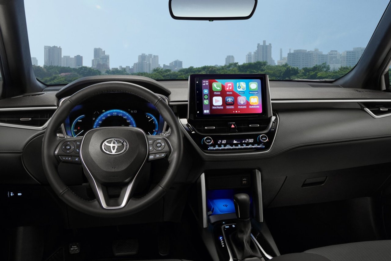 El nuevo Corolla Cross viene equipado con un sistema híbrido compuesto por un motor a combustión de 1.8 lts. combinado con uno eléctrico, y una transmisión de 10 velocidades preprogramadas denominada e-CVT. Se alimenta de una batería que se recarga automáticamente al desacelerar o frenar, brindando una experiencia de conducción única, con un andar silencioso, bajo costo de mantenimiento, baja emisión de CO2, una potencia de 122 CV y un excelente consumo de combustible.
